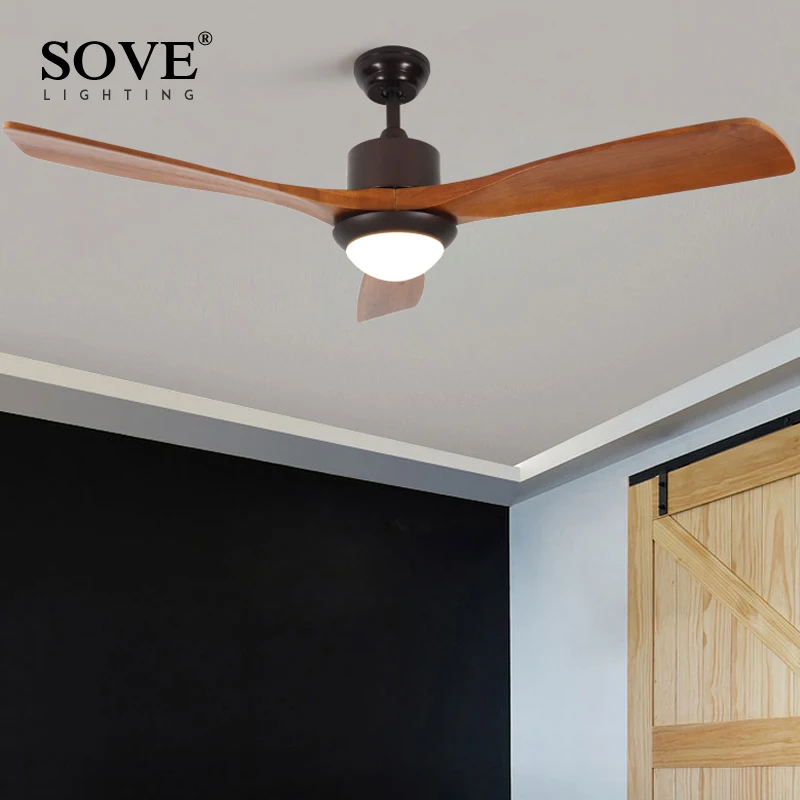Sove 52 Inch Village Wooden Ceiling Fan With Lights Remote Control Attic Ceiling Light Fan Bedroom Home 220v Wood Blade Fan Lamp ceiling-fan-light-remote