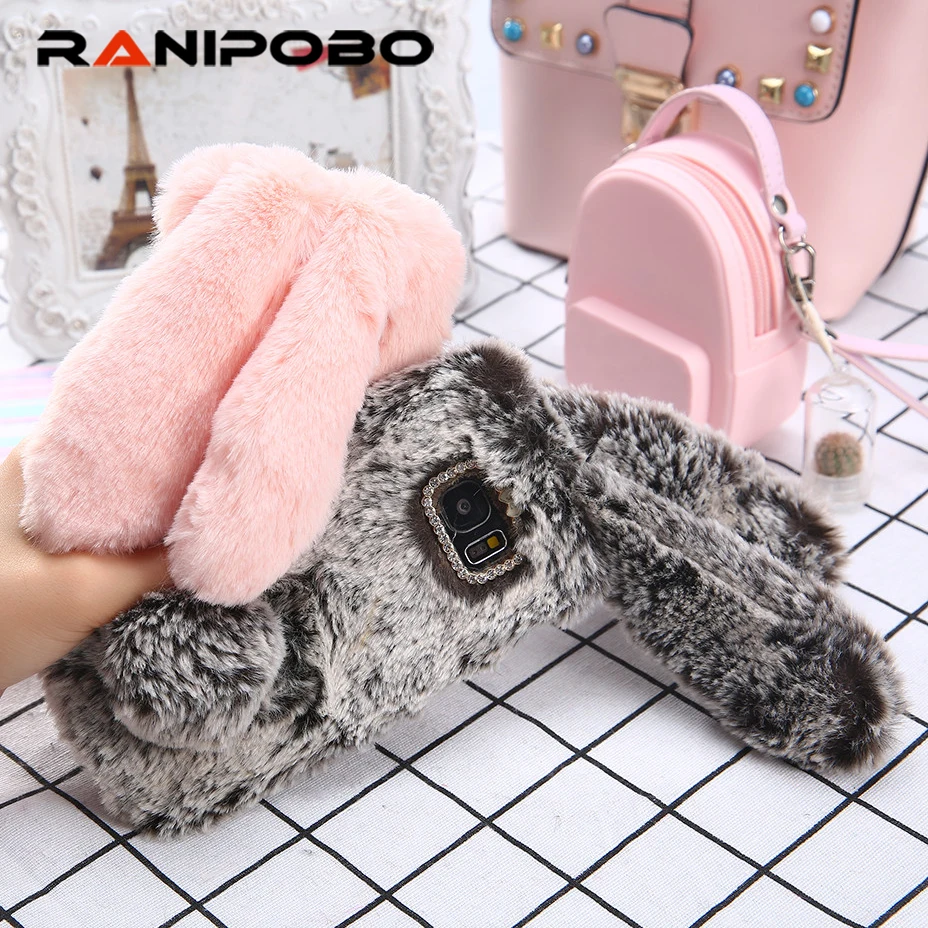 4.7 100 Video Reviews Fluffy Rabbit Fur Silicon Cases For Galaxy S6 S6 edge S7 S7 edge S8 S8 Plus Bling Diamond Winter Warm Fur Cover For Samsung S6 cases-for-s8+