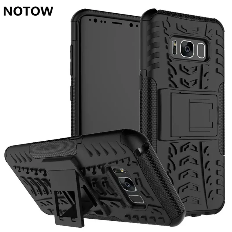 5 100 Video Reviews NOTOW Heavy Duty Armor Shockproof Kickstand Hybird Hard Soft Silicon Rubber Cover Case For Sansung Galaxy S8 5.8 inch cases-for-s8+