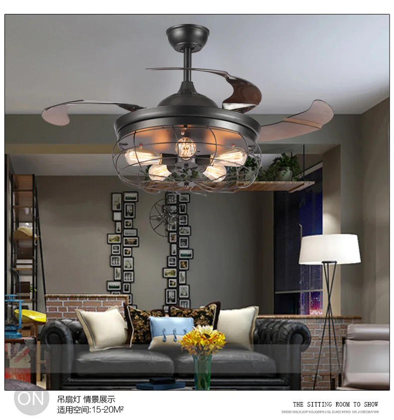>> Don't wait Click! <<110V~260V American loft fan chandeliers creative restaurant industrial living room with remote control light fan chandelier ceiling-fan-light-remote