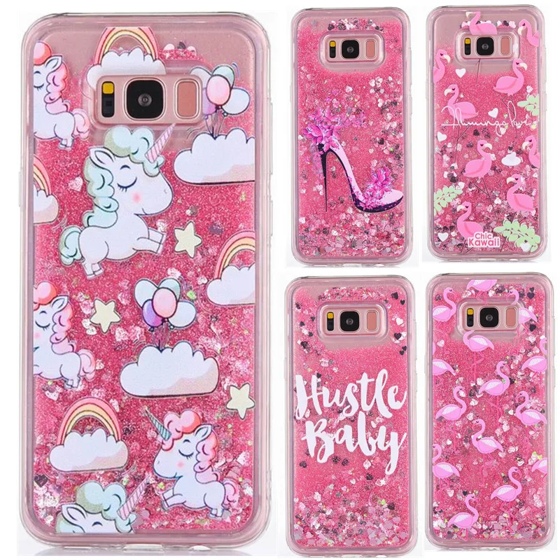 Fantastic Cartoon Unicorn Horse Famingo With Dynamic Flowing Liquid Glitter Funda Phone Cases For Samsung Galaxy S7 Edge S8 Plus cases-for-s8+
