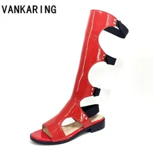 brand fashion sandals gladiator summer shoes woman knee high boots ladies sexy cut-outs black rome boots leather dress slippers Women's Shoes