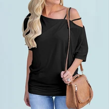 Cheap price Bat Wing Tops One Shoulder Tee Shirt Bandage Vetement Femme 2019 Asymmetrical Tunic Red Plain Black White Tshirt Womens Casual Tops Special Order Now! good quality